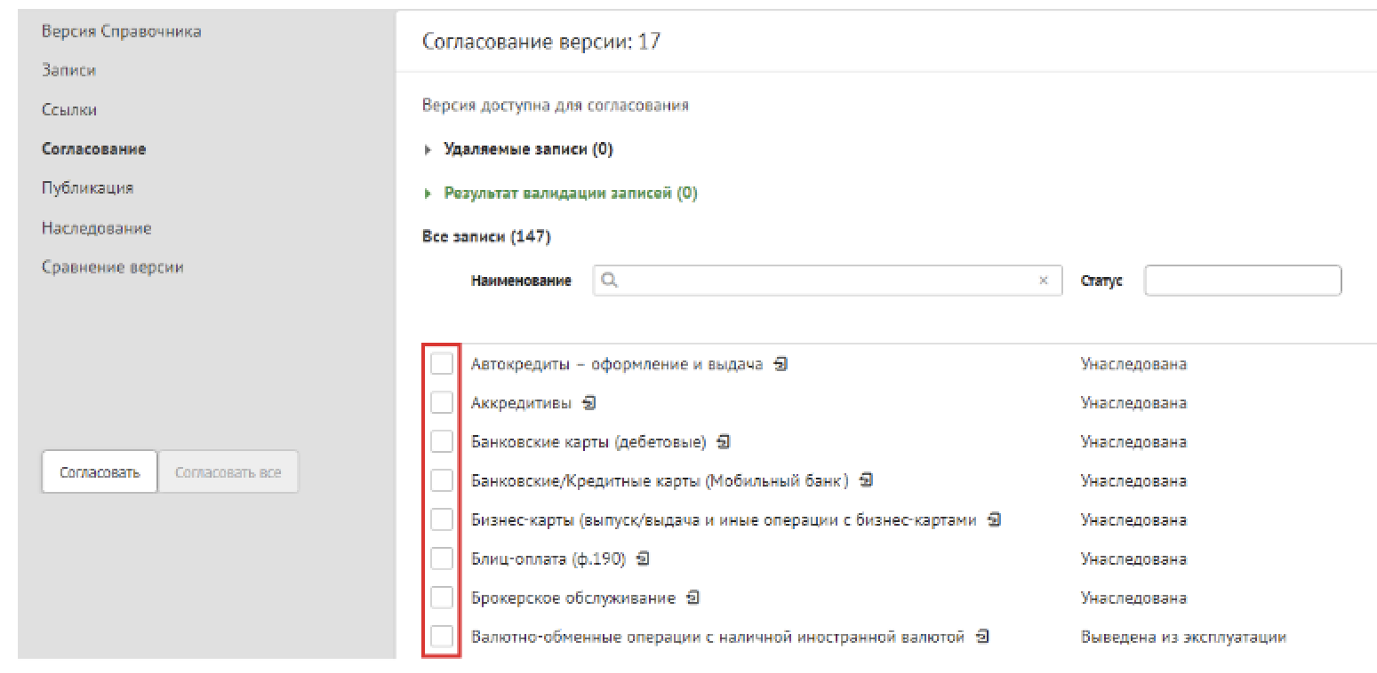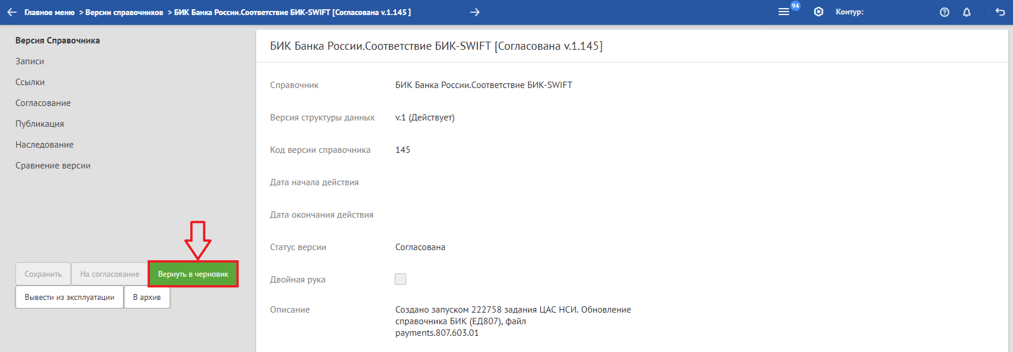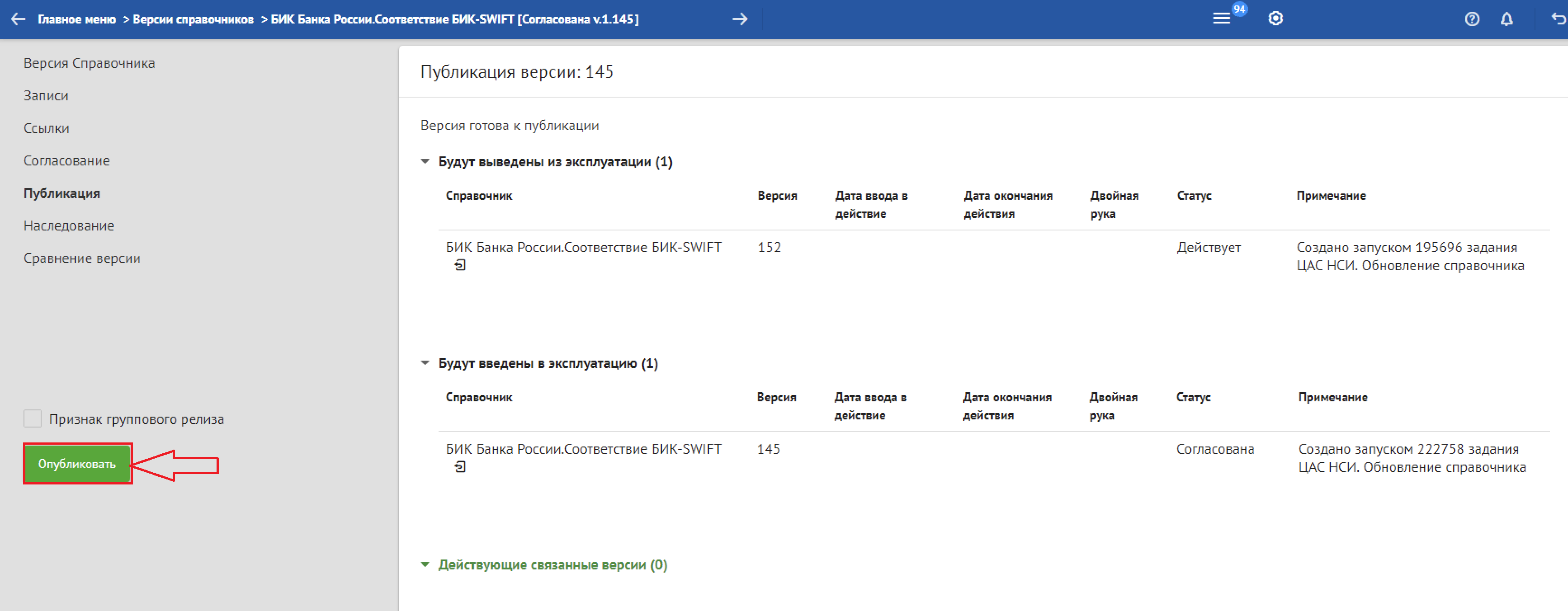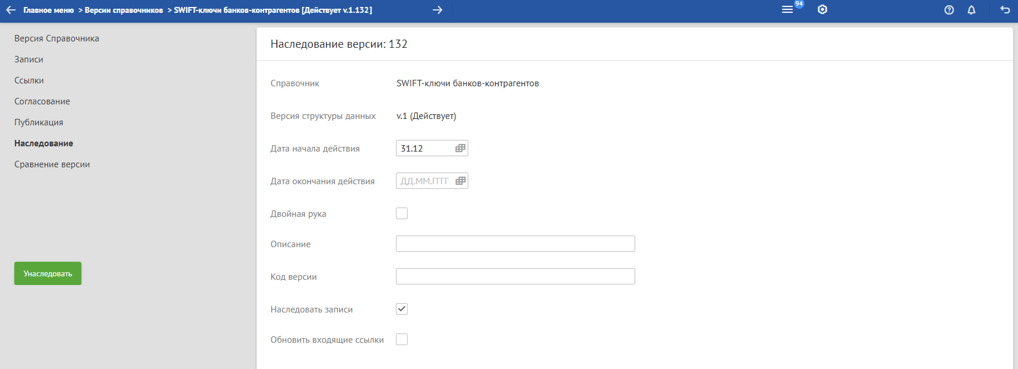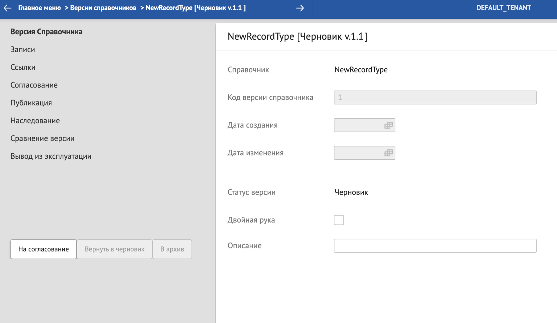 Версии справочников — в данном разделе осуществляется работа по версионированию справочников;