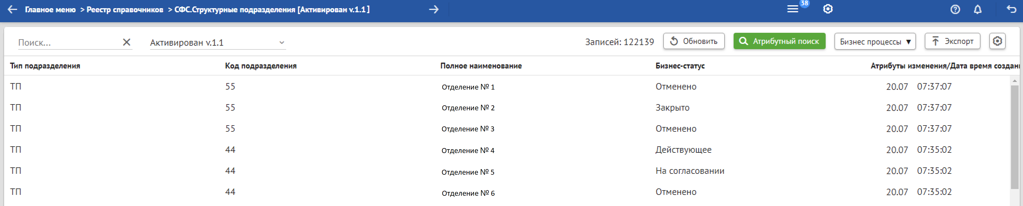 Отображение атрибутивного состава справочника может быть настроено вручную для удобства использования справочных данных. NSIX может отображать только те атрибуты записей, которые необходимы для выполнения конкретной задачи.