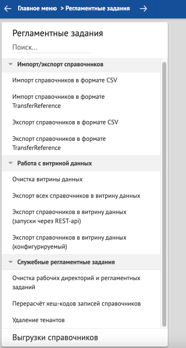 Регламентные задания — в данном разделе осуществляется работа с регламентными заданиями;