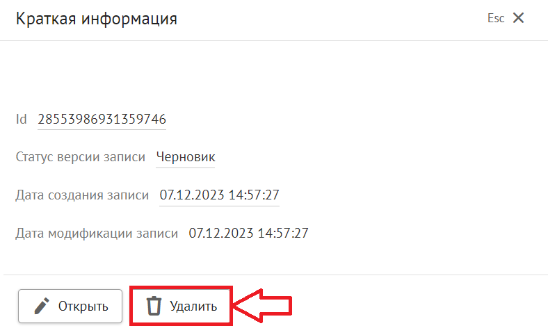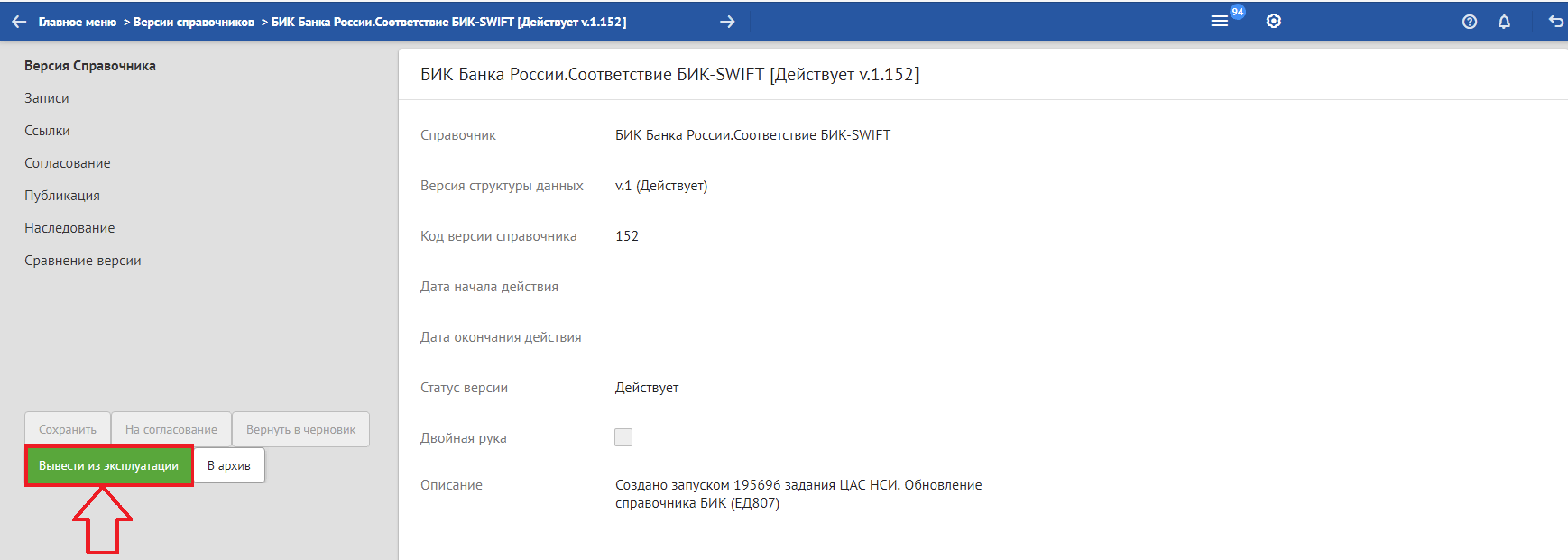 Деактивация — изменение статуса записи с «Действует» на «Выведена из эксплуатации» |