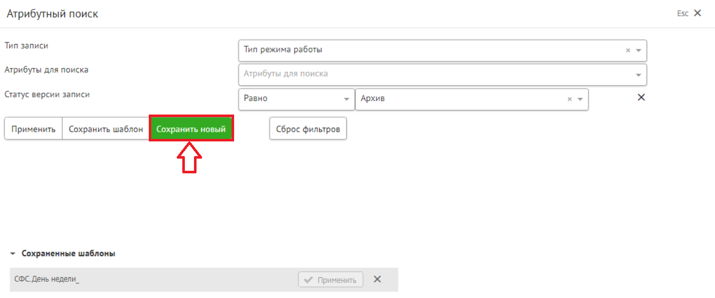 Если заданные атрибуты поиска необходимо сохранить в качестве шаблона поиска, нажмите кнопку Сохранить шаблон. Сохраненный шаблон отобразится в списке «Сохраненные шаблоны». NSIX выведет сообщение, что шаблон успешно сохранен.