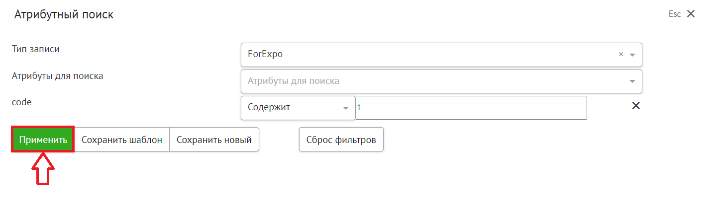 Выберите требуемый атрибут из выпадающего списка в поле Атрибуты для поиска.