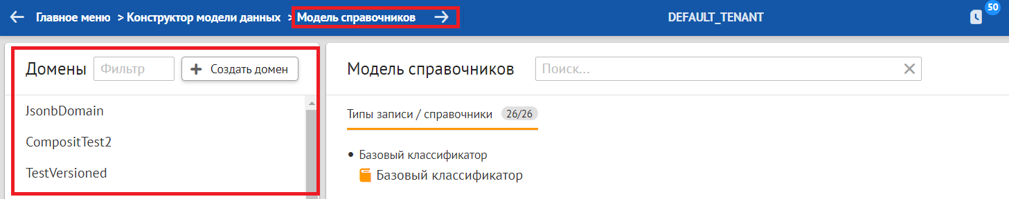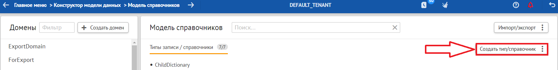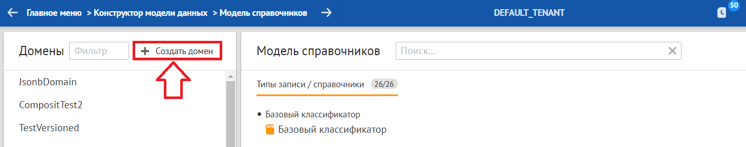 В выбранном домене создайте справочник с помощью кнопки Создать справочник.