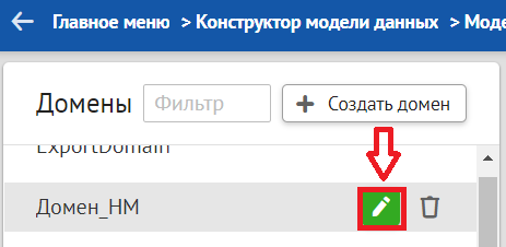 В рабочей области домена выберите тип записи, который необходимо изменить.