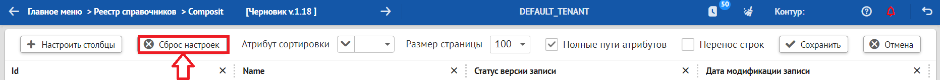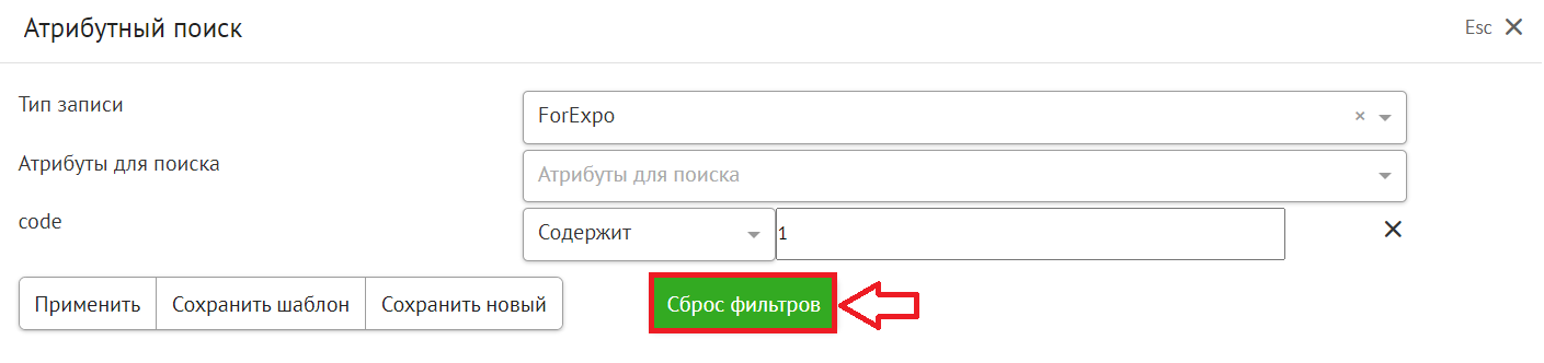 Для сброса выбранных атрибутов фильтрации нажмите кнопку Сброс фильтров.