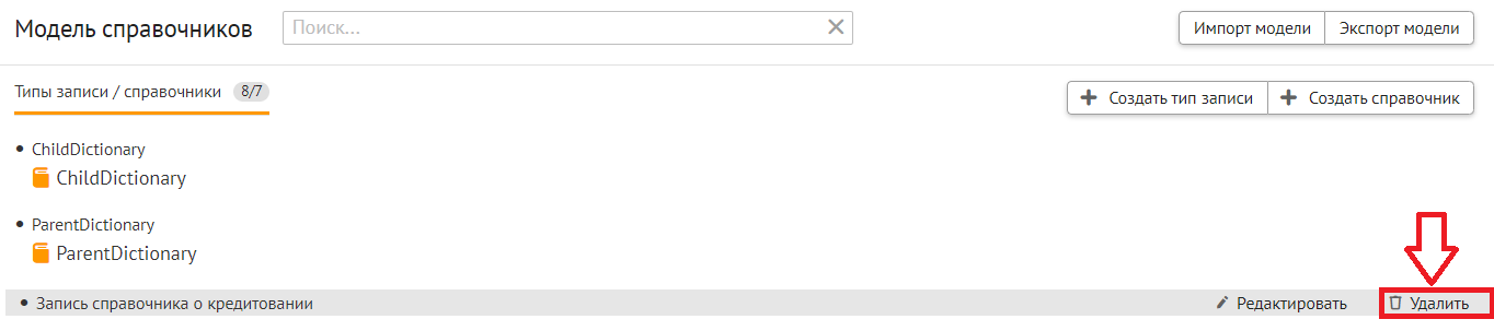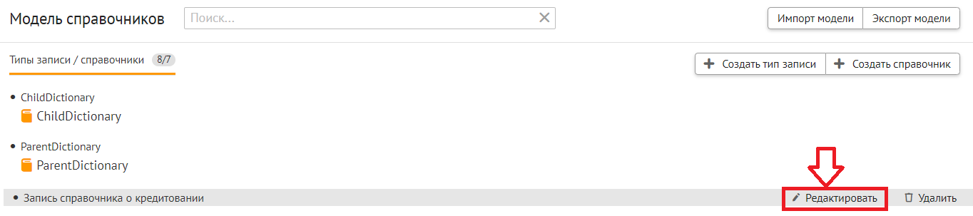 Конструктор модели данных — в данном разделе осуществляется работа по созданию и настройке модели данных справочников.