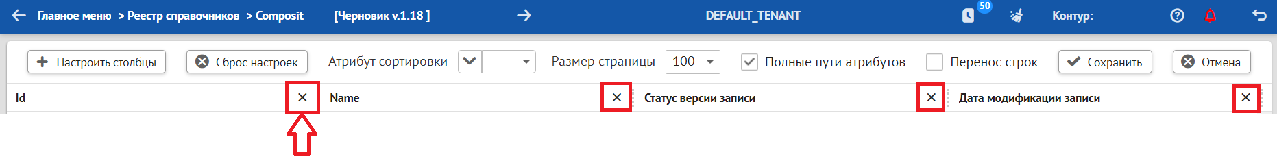 Для удаления ненужного столбца нажмите на значок «Крестик» в правом углу относительно наименования столбца.