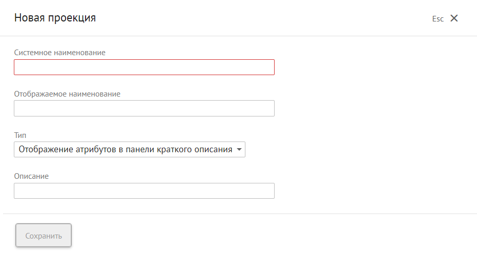 Заполните необходимые параметры в модальном окне Новая проекция и нажмите на кнопку Сохранить. Появится информационное окно Проекция успешно создана.