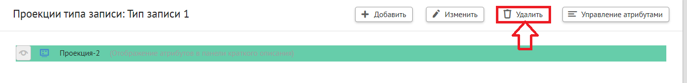 Нажмите кнопку Удалить. Подтвердите действие. Проекция будет удалена.
