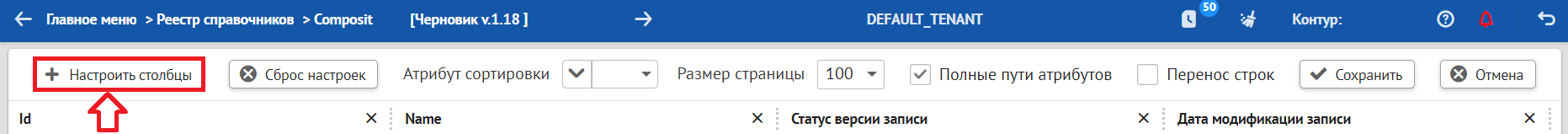 Для настройки таблицы (например, добавления нового столбца), нажмите кнопку Настроить столбцы. Поставьте чек-бокс напротив необходимого атрибута в списке.