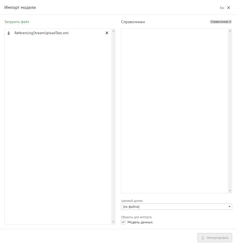 Нажмите кнопку Импорт модели. Откроется модальное окно Импорт модели.