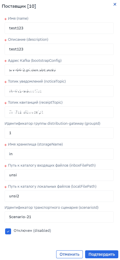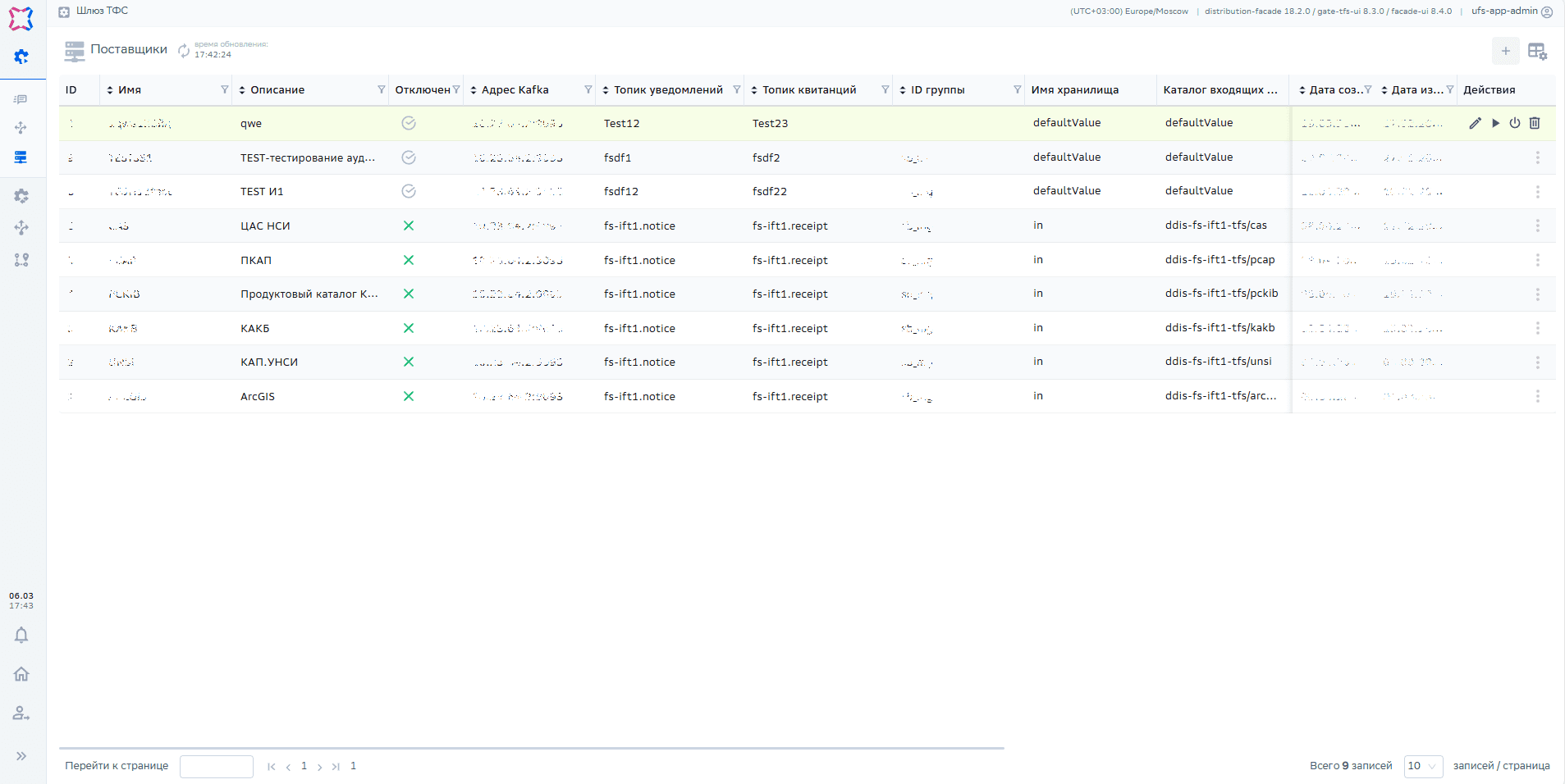 Контроллер –> Шлюзы –> Шлюз ТФС –> Поставщики |