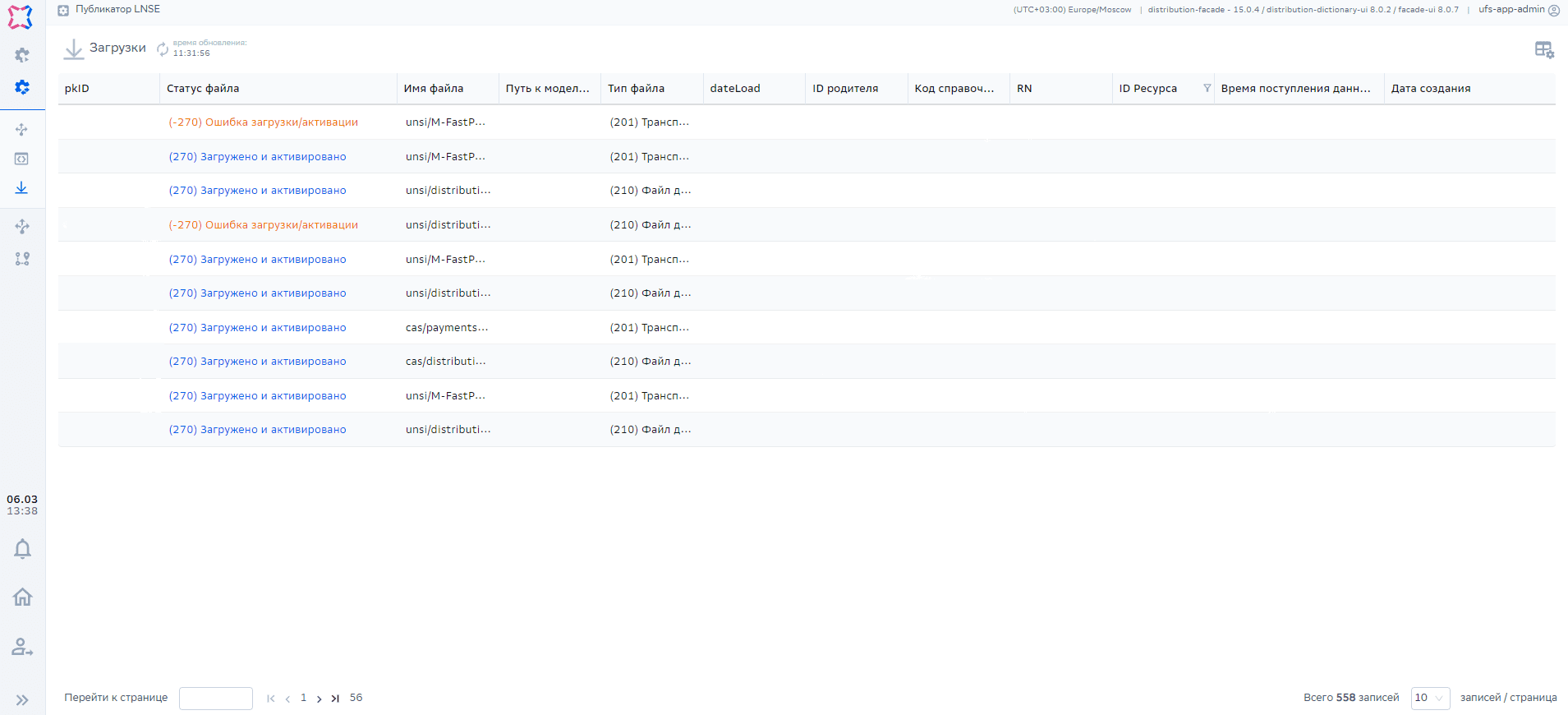 Переход в UI сервиса Публикатор LNSE |