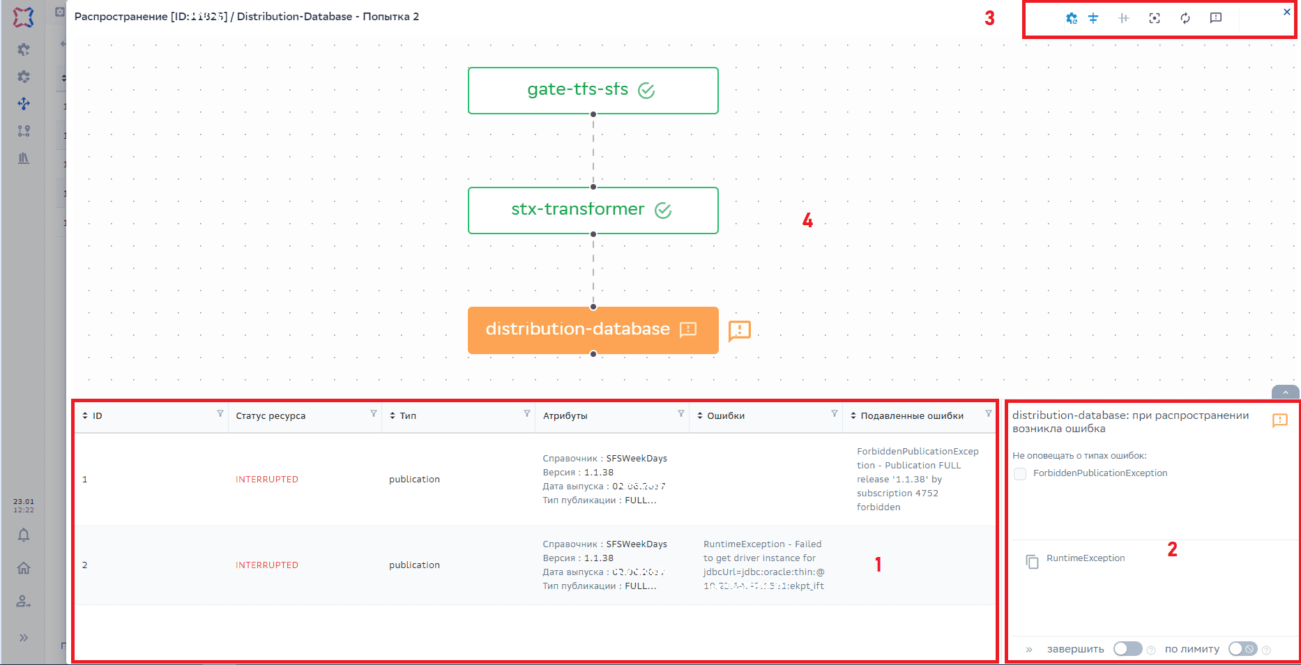 значок предупреждения о подавленной ошибке напротив этапа обработки распространения пропадает;