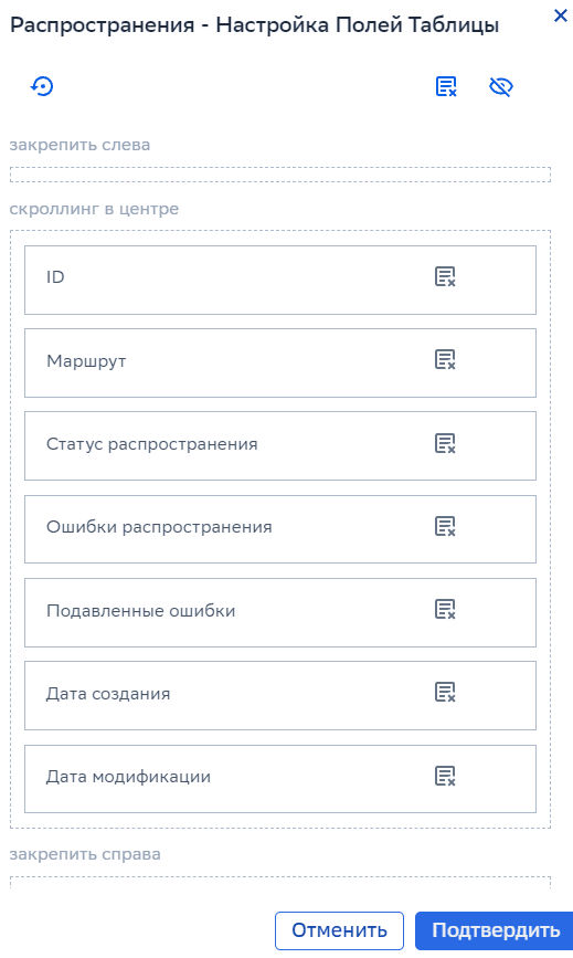 Операторам со всеми ролями доступен переход к просмотру списка всех запущенных или уже отработанных распространений в рамках 1 маршрута.