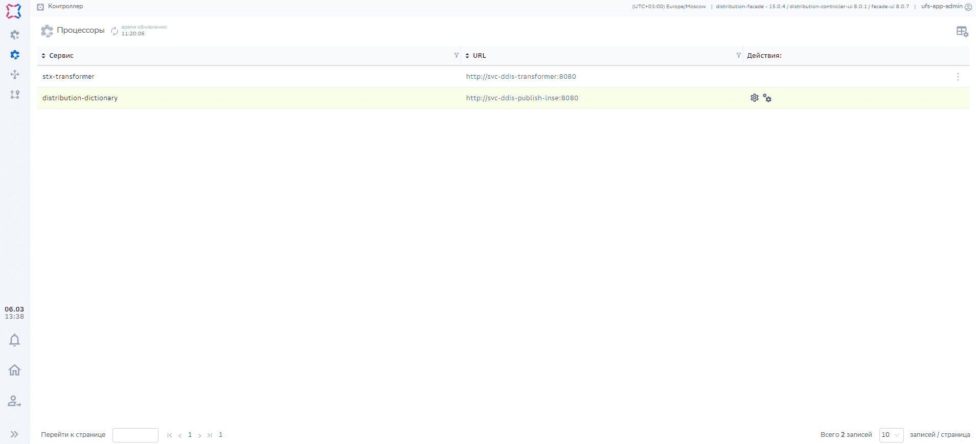Контроллер –> Процессоры –> Публикатор LNSE — Настройки –> Распространения –> Перейти к ресурсам |