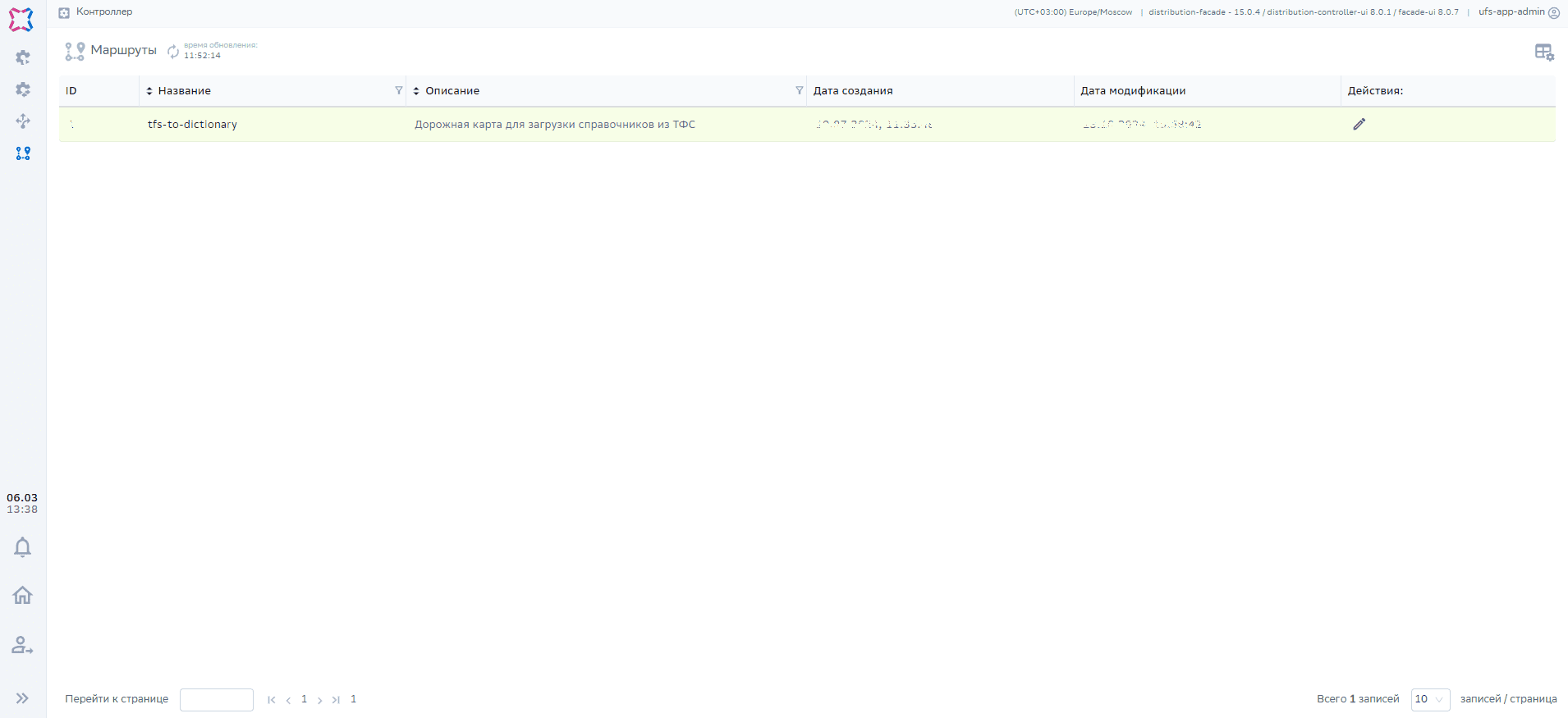 Дата модификации — дата изменения маршрута;