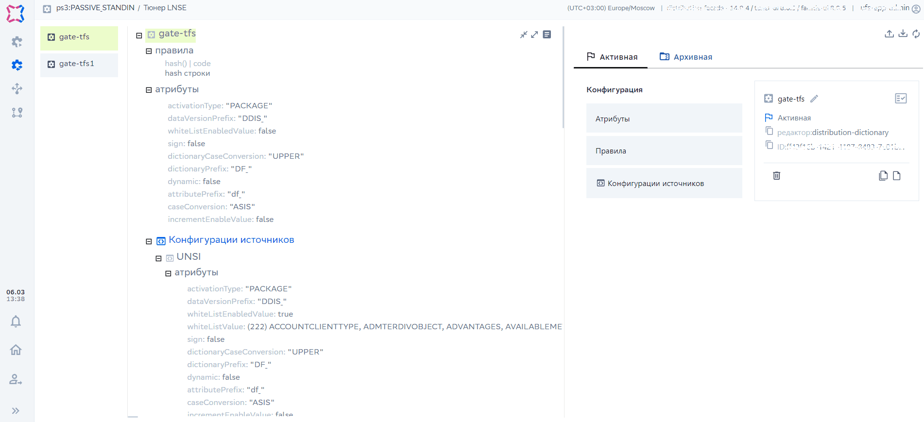 Переход в UI сервиса Tuner LNSE. «Скачать данные сервиса в виде файла», «Загрузить файл сервиса на сервер», «Обновить данные сервиса», «Показать результирующую конфигурацию». Также доступны действия Создания/Редактирования/Удаления атрибутов для следующих уровней: Сервисы, Источники, Клиенты, Домены, Справочники |