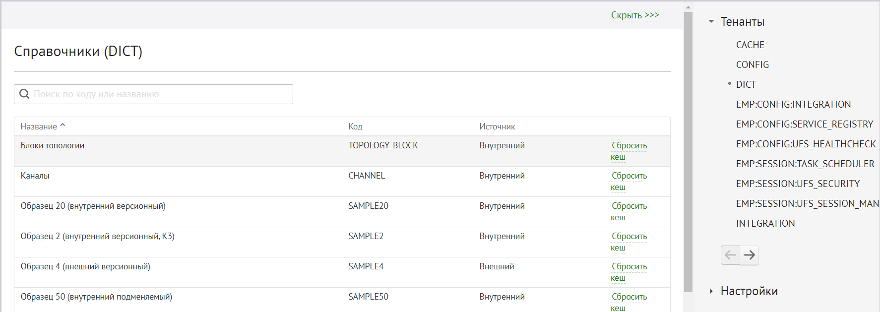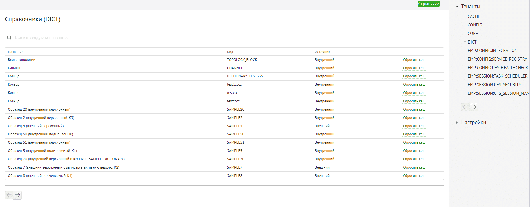 Внутренние — справочники, владельцами которых являются приложения, реализованные на Platform V. Первичное наполнение осуществляется с использованием инструментов DevOps, изменения вносятся в административном интерфейсе компонента LNSE.