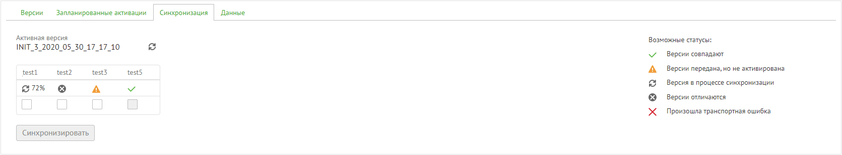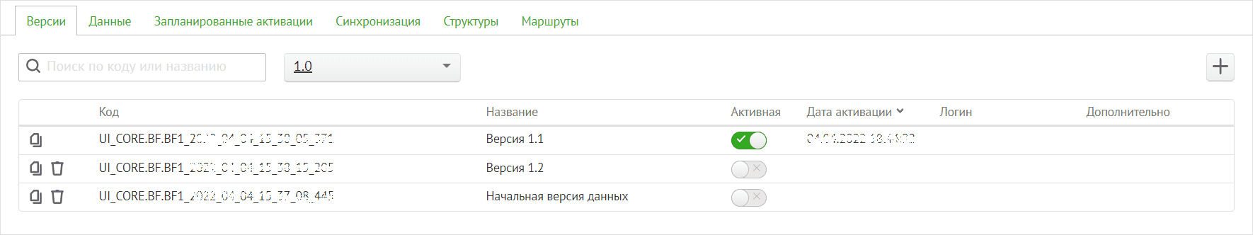 активации версий структуры и версий данных внешних и внутренних справочников;