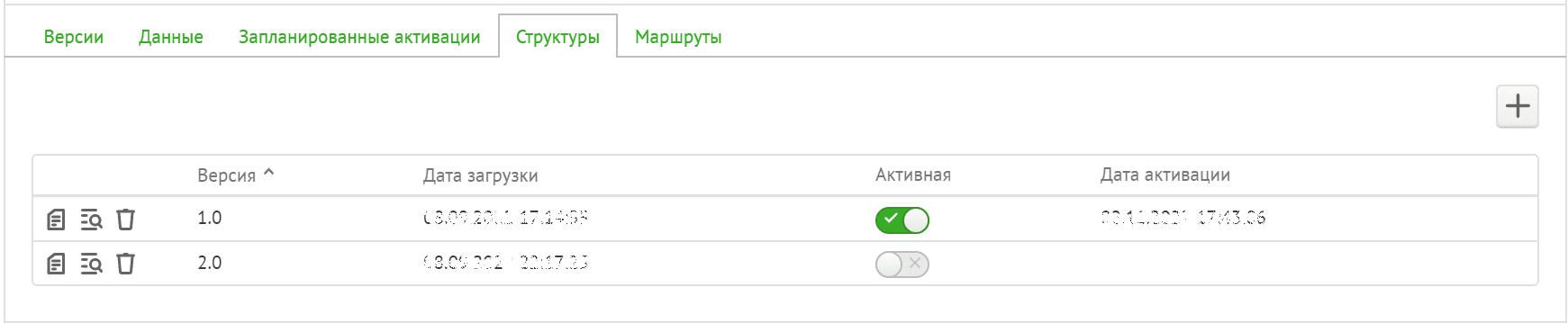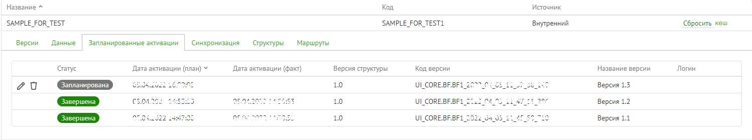 активации версий структуры и версий данных внешних и внутренних справочников;
