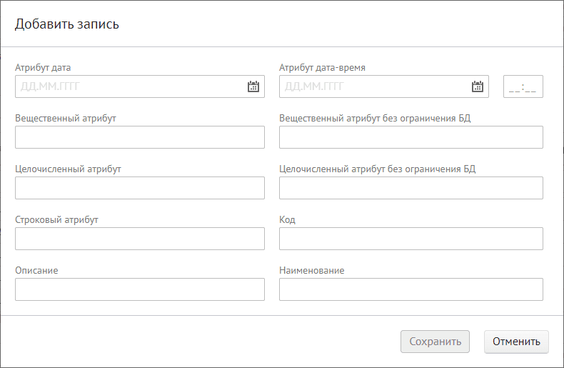 Ошибка при попытке создания или изменения записи внутреннего справочника (действие выполняется бизнес-администратором с правом редактирования или системным администратором справочников):