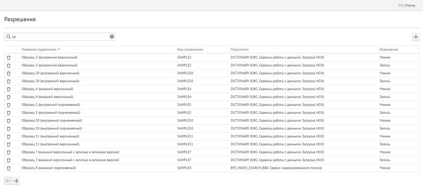 просмотра и редактирования разрешений для доступа к справочникам.