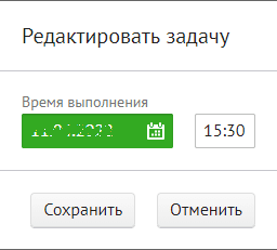 в строке описания задачи.В открывшейся форме «Редактировать задачу» измените дату и время выполнения, нажмите на кнопку «Сохранить».
