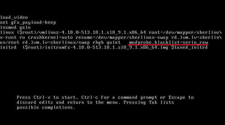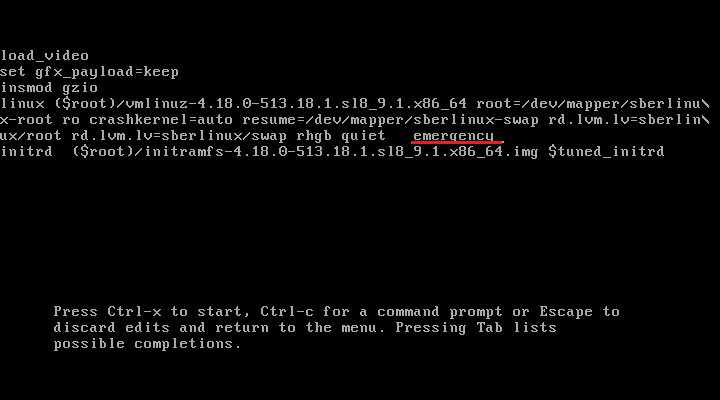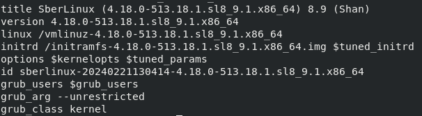 title="SberLinux (0-rescue-<индекс_ядра>) <версия_релиза> (Shkhara)"