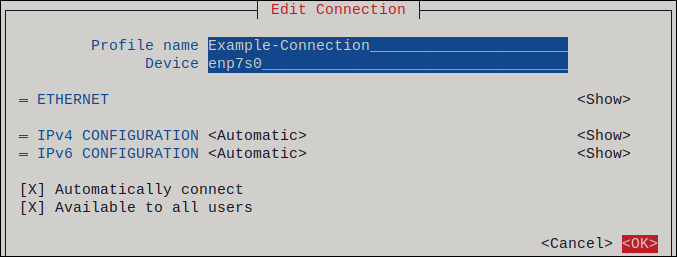 Настройка статического соединения Ethernet с помощью утилиты nmcli#