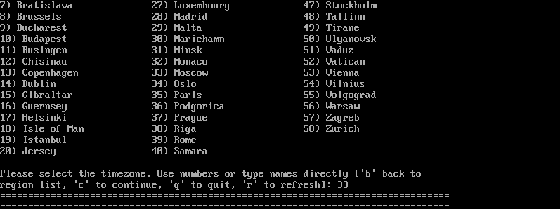 Выберите параметр по умолчанию и введите [с] для перехода в главное меню.