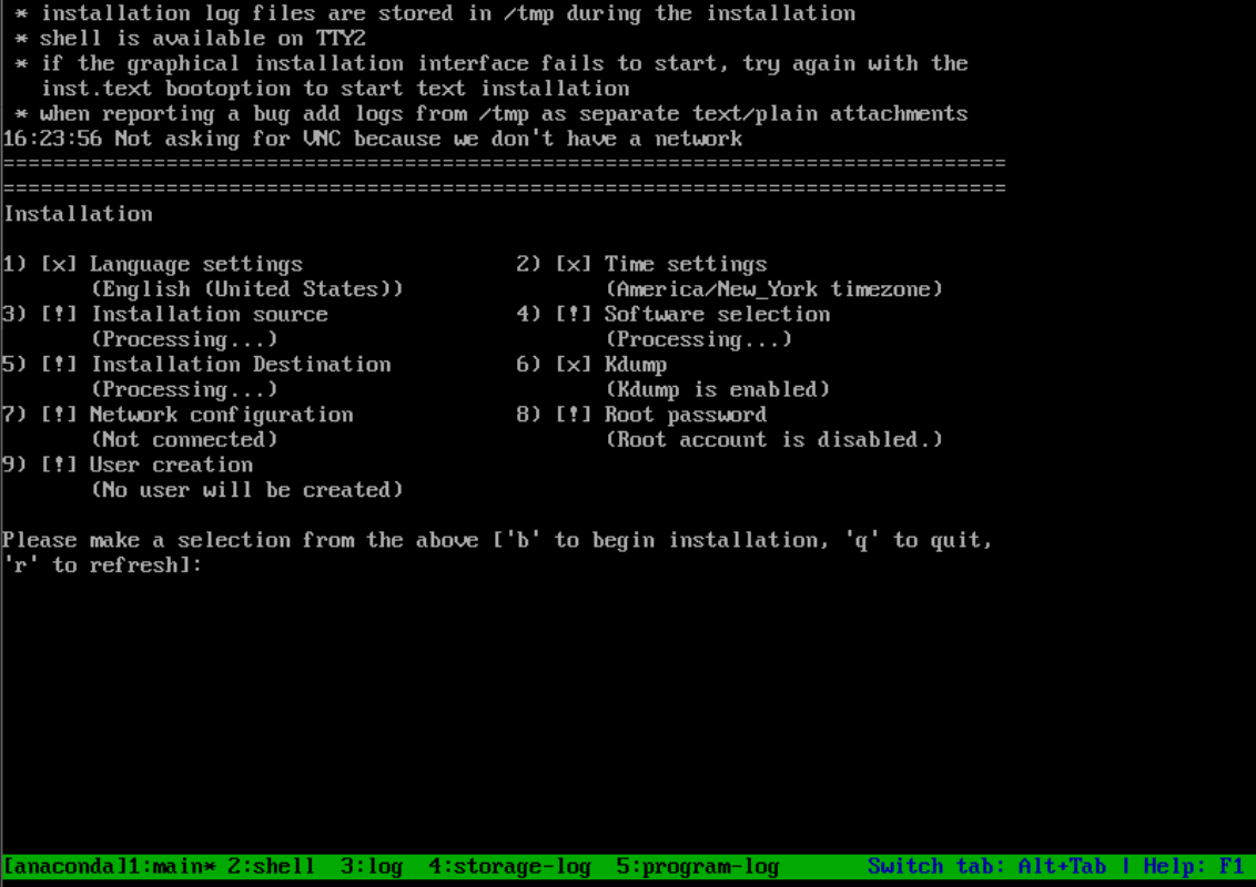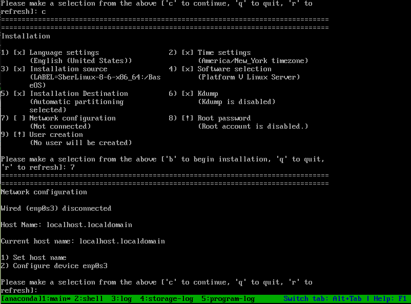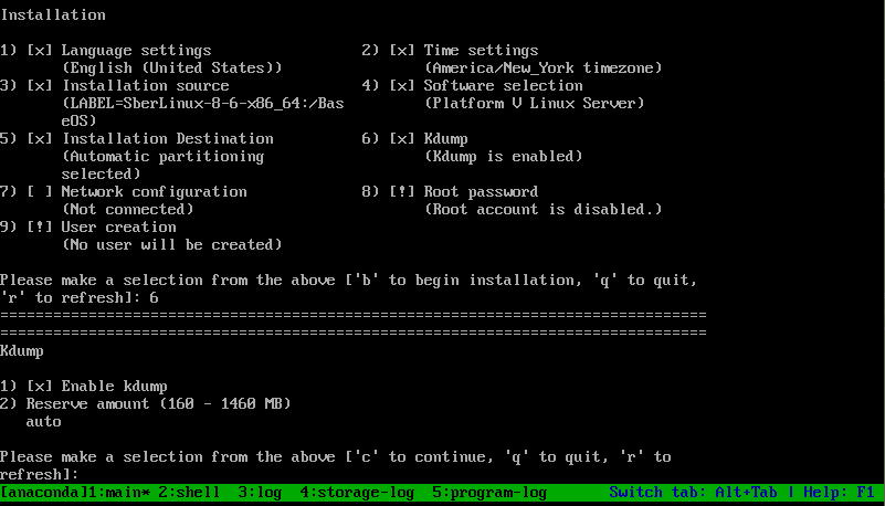 Введите [b] и нажмите клавишу Enter, чтобы начать установку SberLinux.