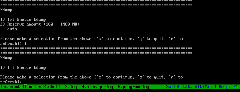 Выберите шестой пункт Kdump и введите 6 для настройки Kdump.