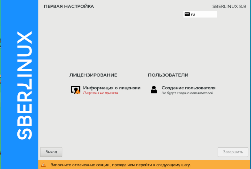 На этом этапе установка SberLinux завершена, можно приступать к работе в новой системе.