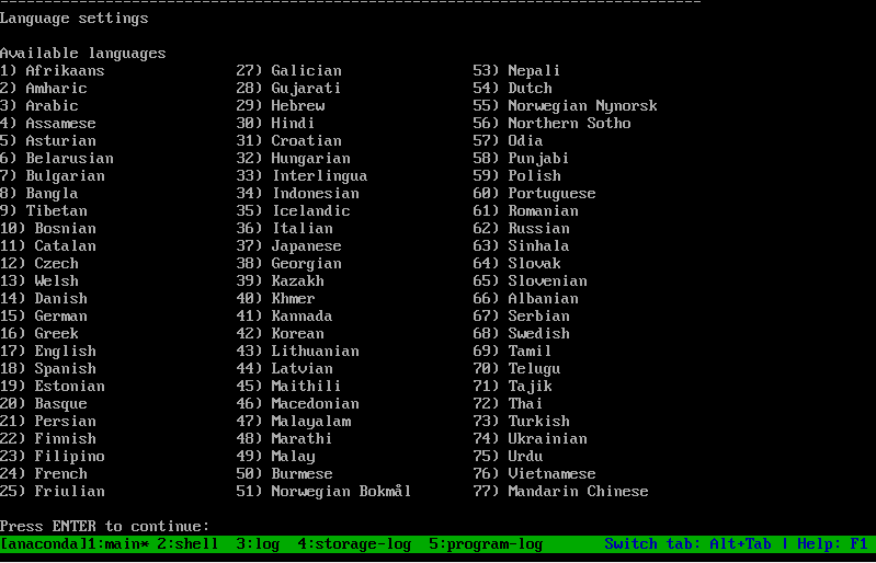 Настройка языка в bash зависит от настройки, выбранной при установке SberLinux с использованием Anaconda. Кириллица не поддерживается Bash, поэтому приведет к ошибкам отображения команд и комментариев. Рекомендуется выбирать кириллицу и латиницу.