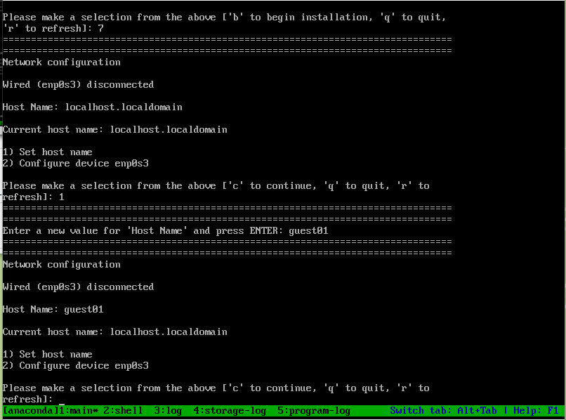 Введите 1 для выбора имени хоста. Нажмите клавишу Enter.