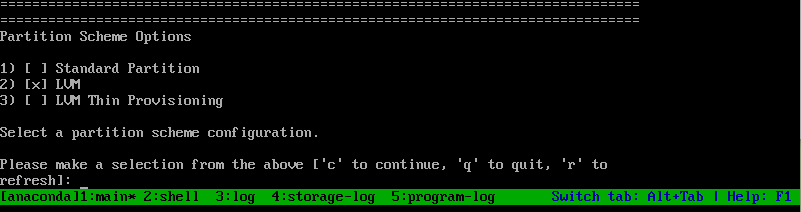 Введите [с] и нажмите клавишу Enter для выбора параметров схемы разделения Partition Scheme Options.