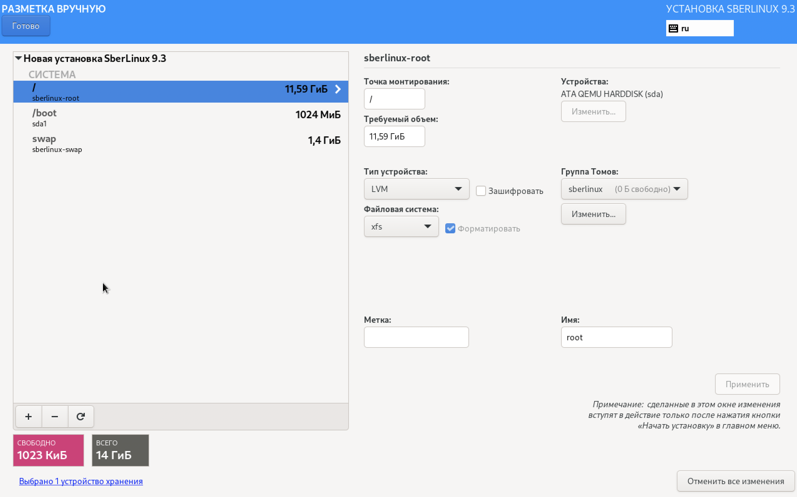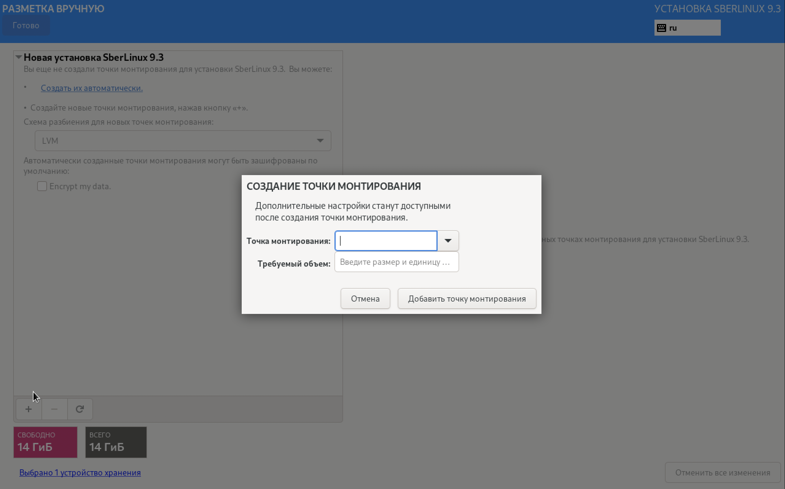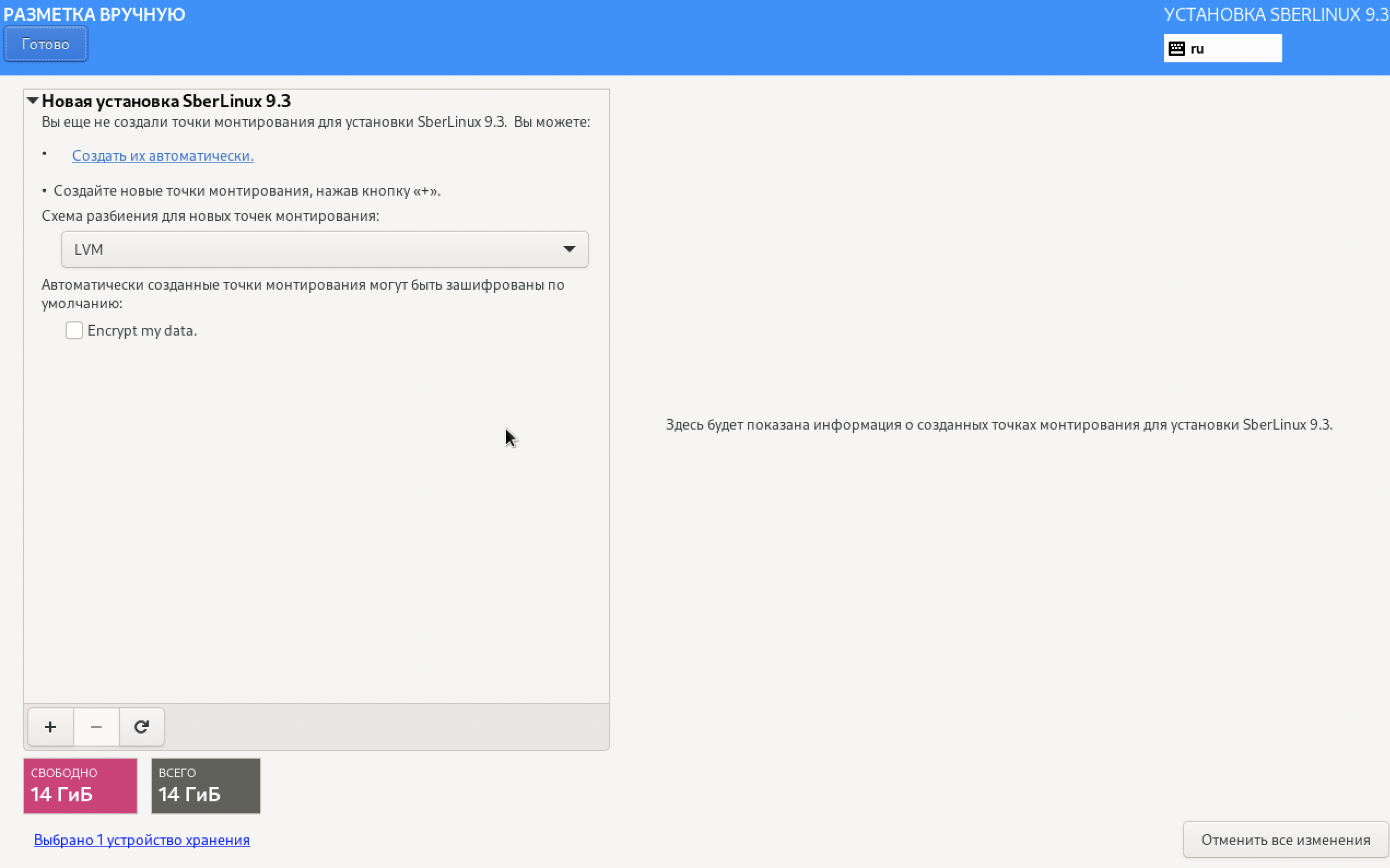 Install SberLinux 9.3 - для установки с помощью графической программы установки;