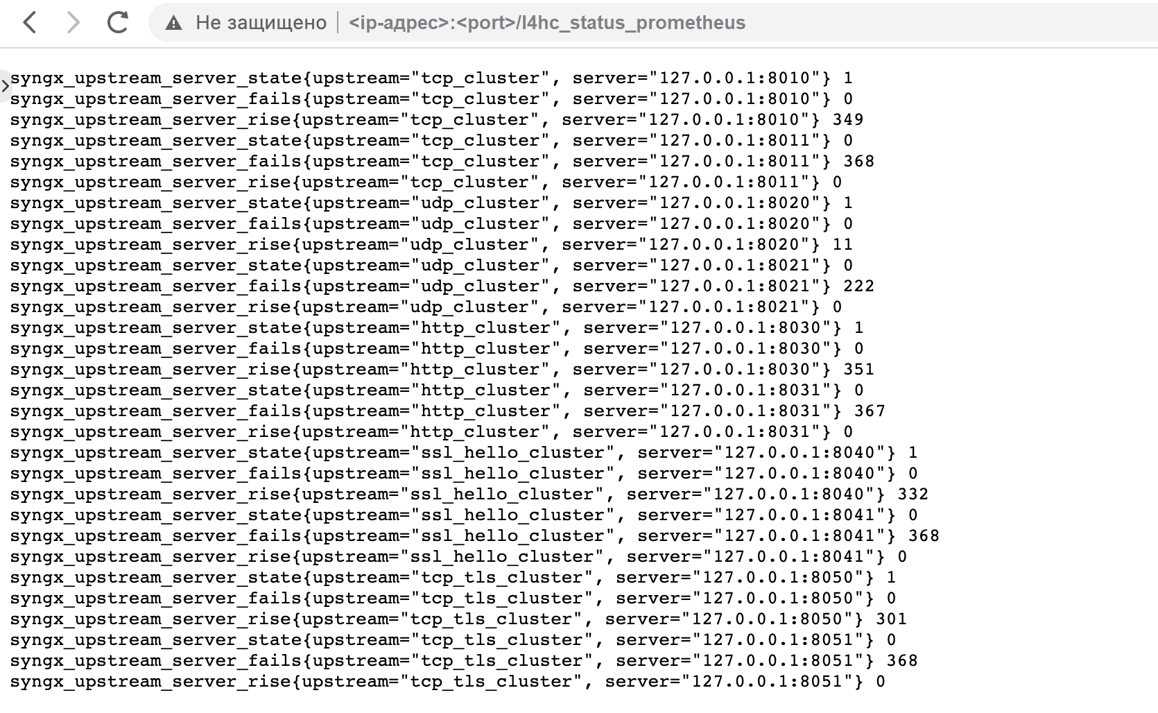 Данный модуль предоставляет возможность учета текущего состояния вычислительного узла в группе балансировки на уровне секции stream (на уровне L4 модели OSI) при распределении запросов. При базовой настройке конфигурации, он будет выдавать метрики в виде HTML-страницы. Однако, администратор может настроить выдачу в формате json или prometeus.