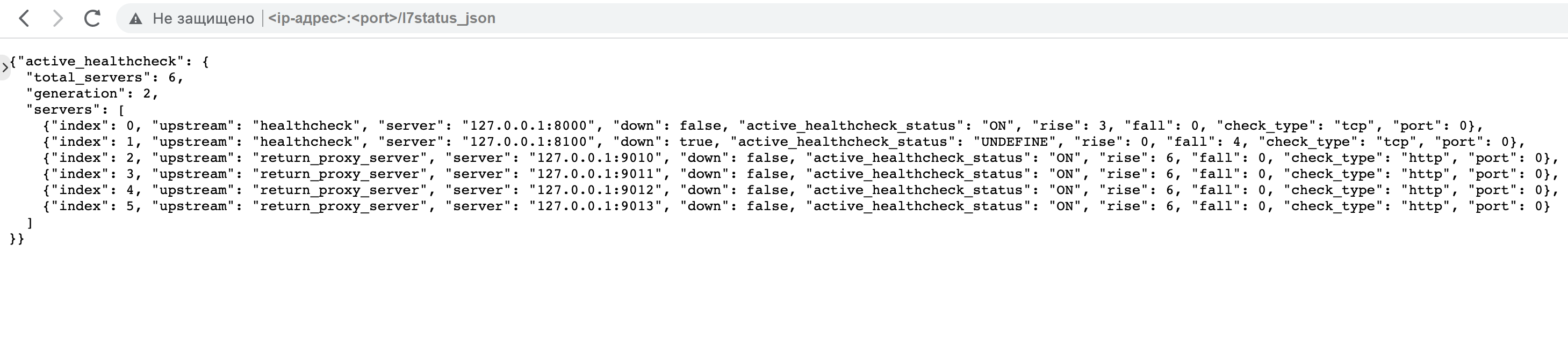 Данный модуль предоставляет возможность учета текущего состояния вычислительного узла в группе балансировки на уровне секции http (на уровне L7 модели OSI) при распределении запросов. При базовой настройке конфигурации, он будет выдавать метрики в виде HTML-страницы. Однако, администратор может настроить выдачу в формате json или prometeus.