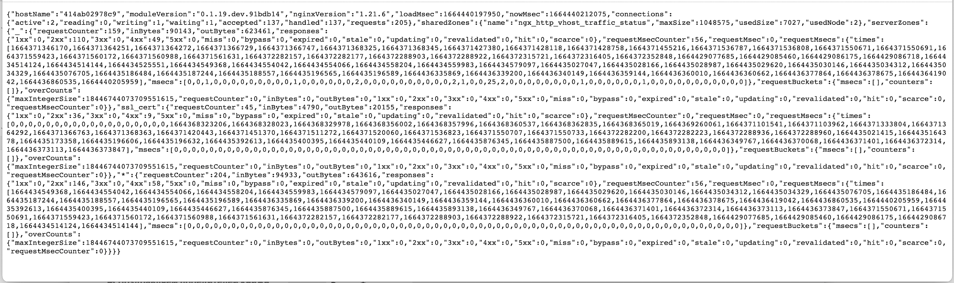 Пример вывода метрик модуля в формате JSON: