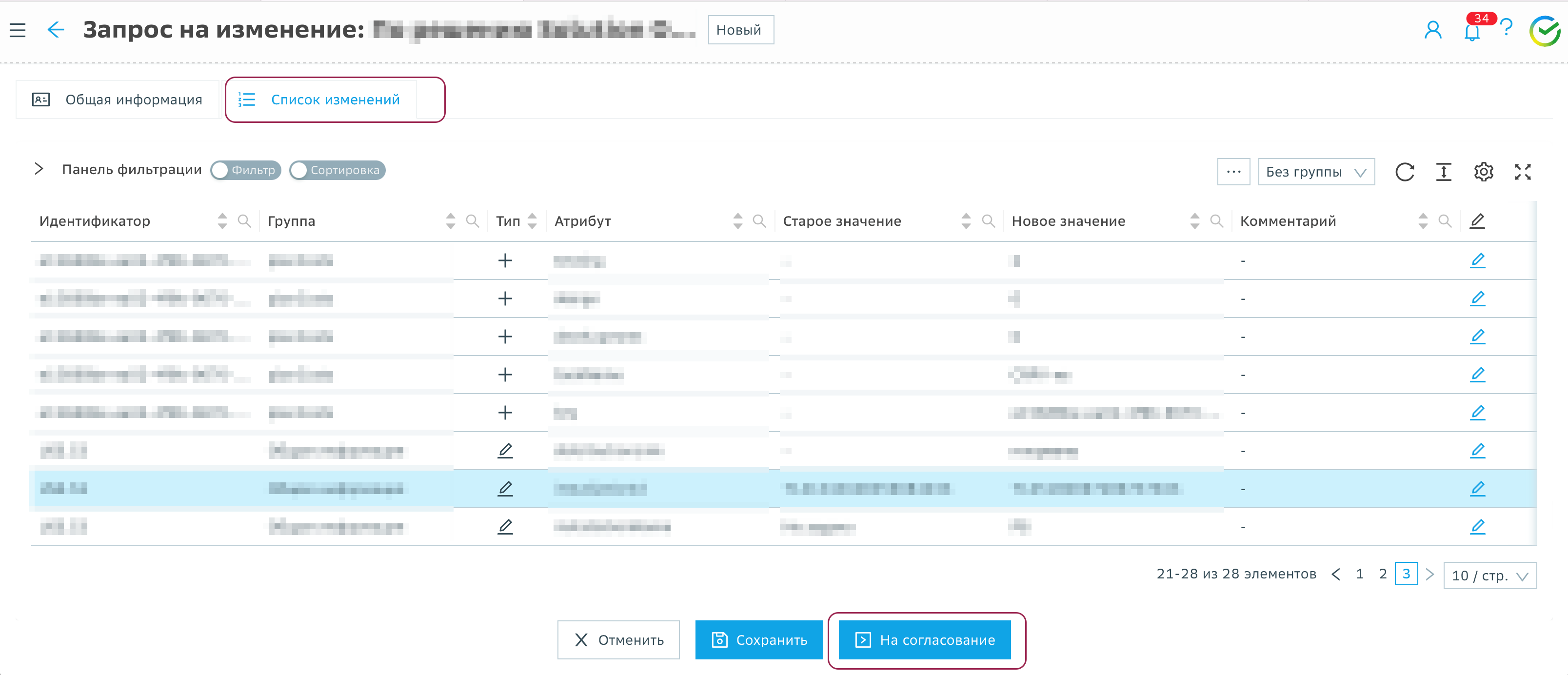 просмотреть Запрос на Изменение;