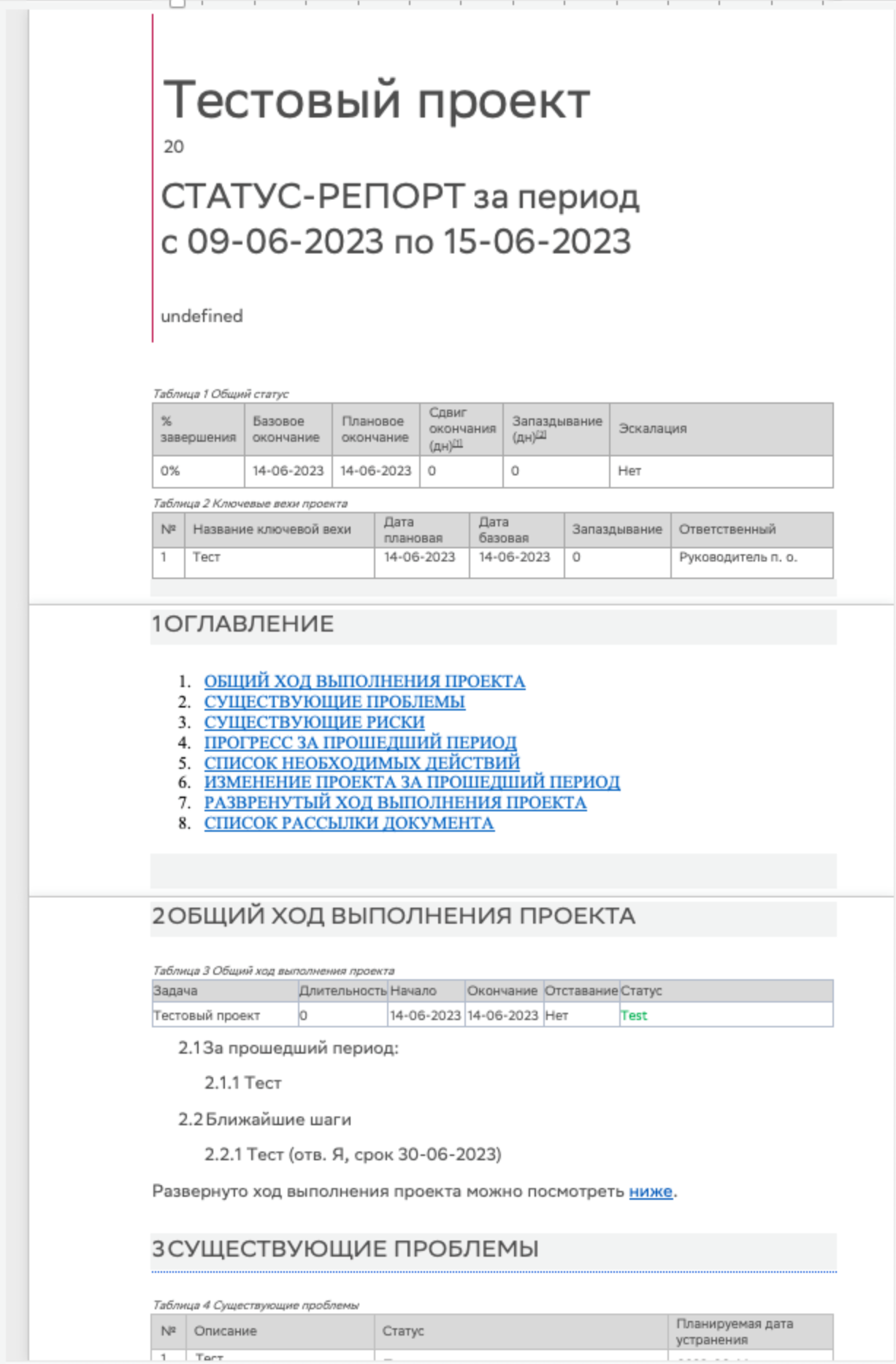 Руководитель проекта на регулярной основе имеет возможность формировать отчет о ходе исполнения проекта. Переодичность формирования отчетов определяется проектным офисом и настраивается Администратором системы.