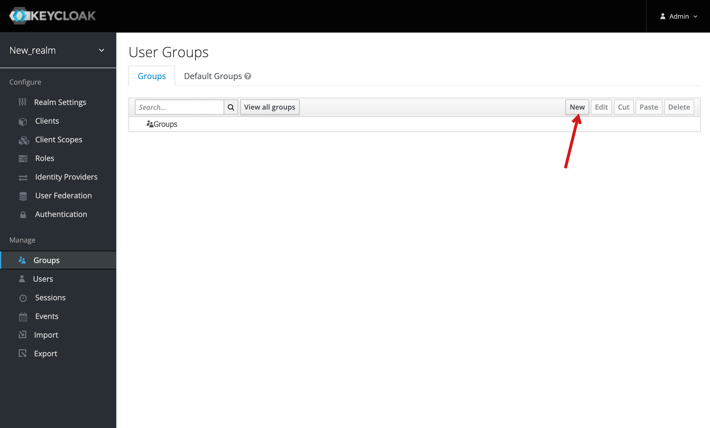 Перейдите в раздел Groups (Клиенты) и нажмите кнопку New (Новый):