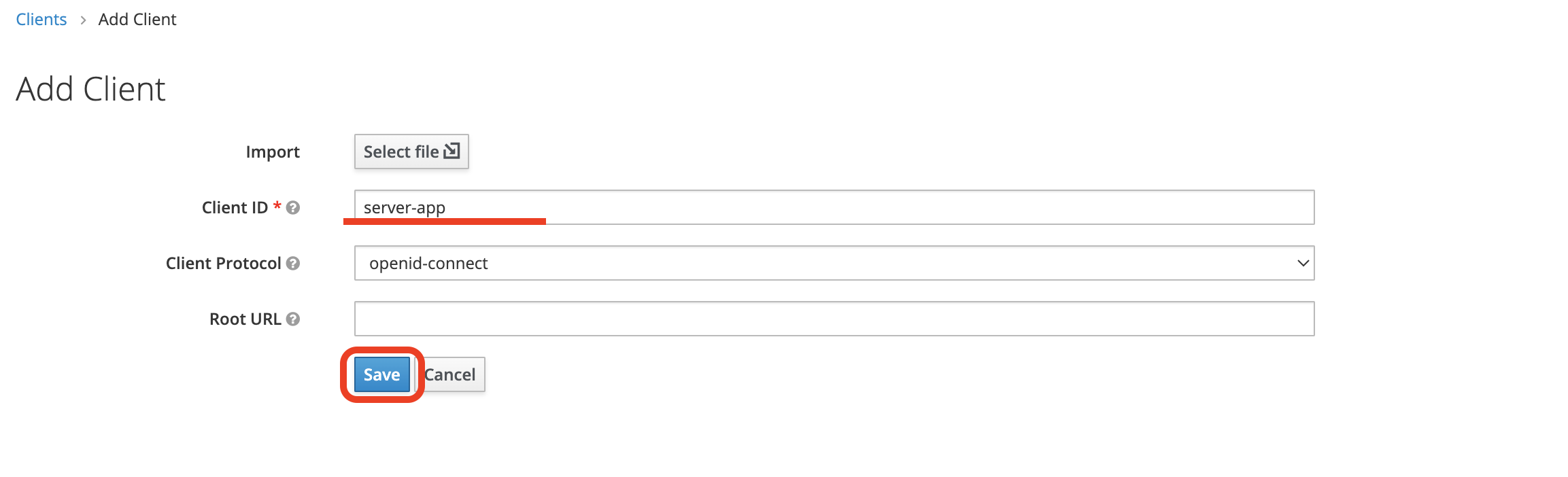 Укажите идентификатор клиента (например: server-app) в поле Client ID и нажмите кнопку Save (Сохранить):