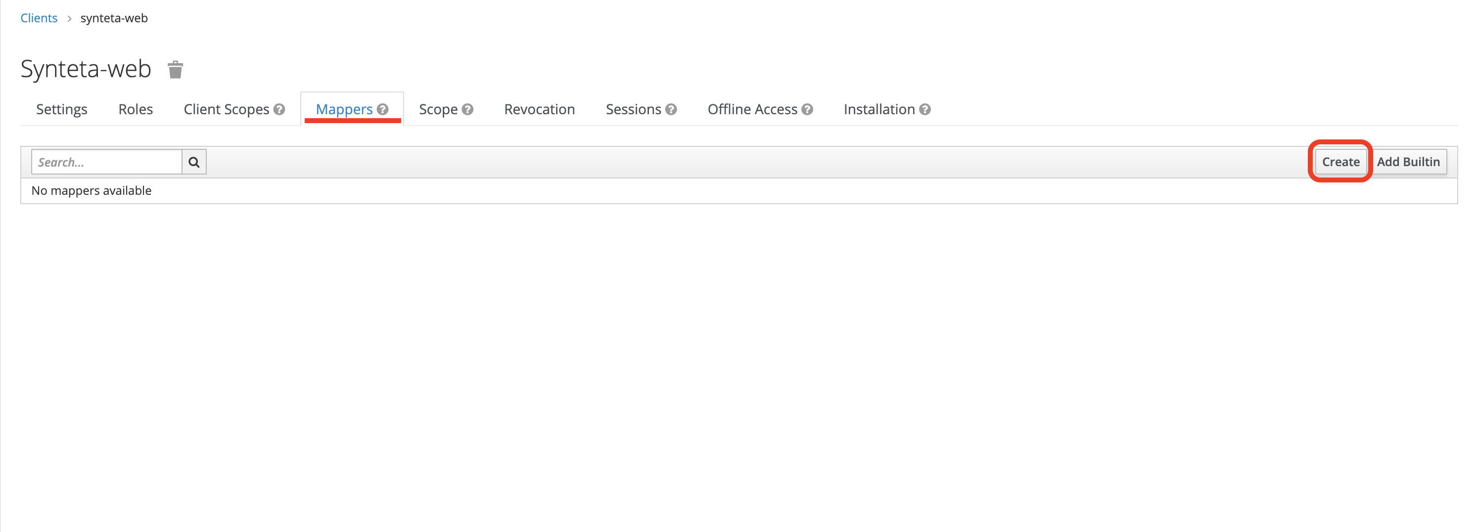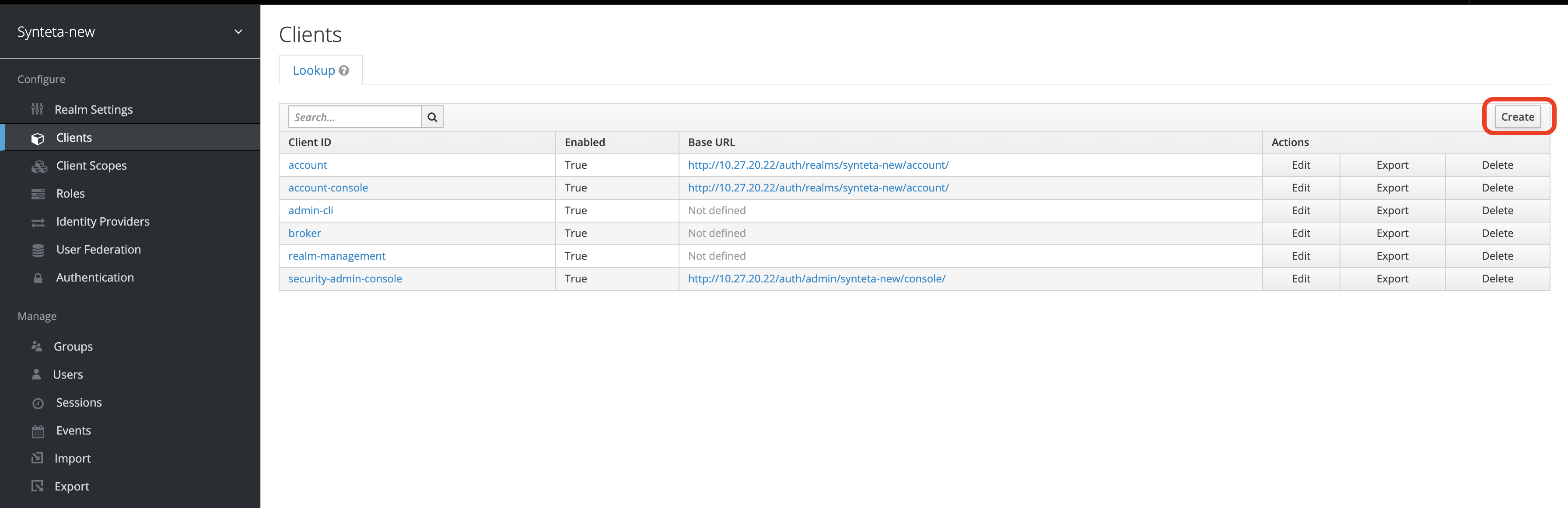 Перейдите в раздел Clients (Клиенты) и нажмите кнопку Create (Создать):