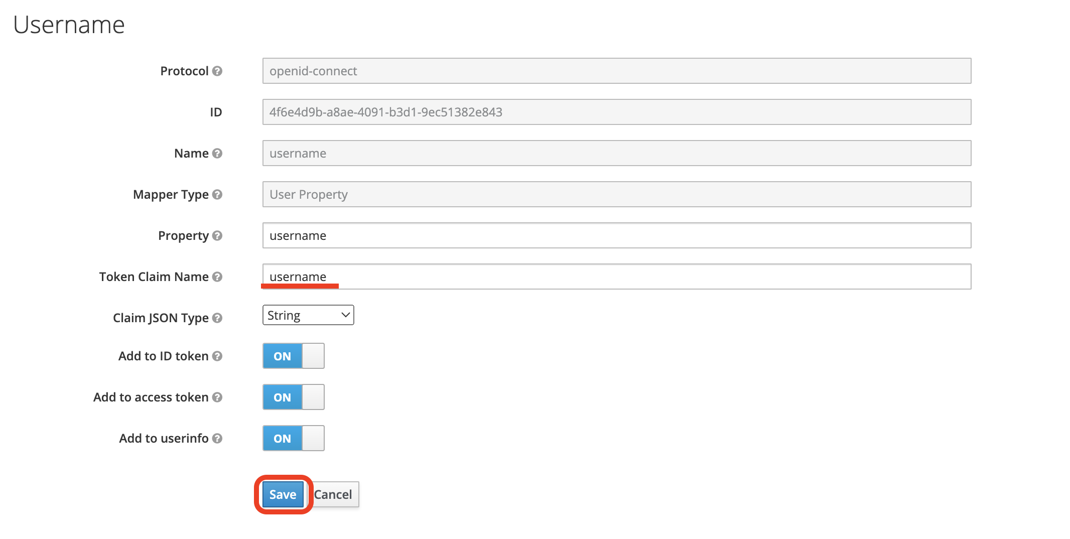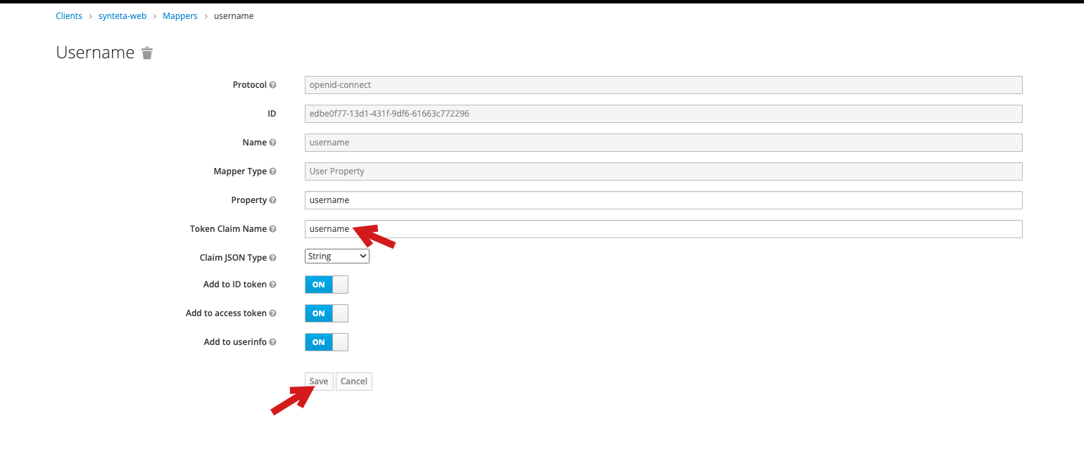 usernameв поле Token Claim Name и нажмите кнопку Save (Сохранить):