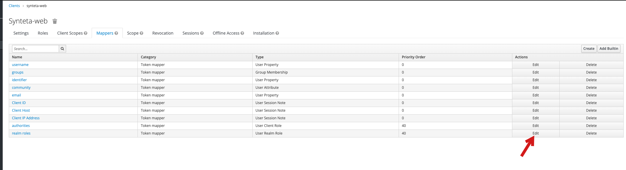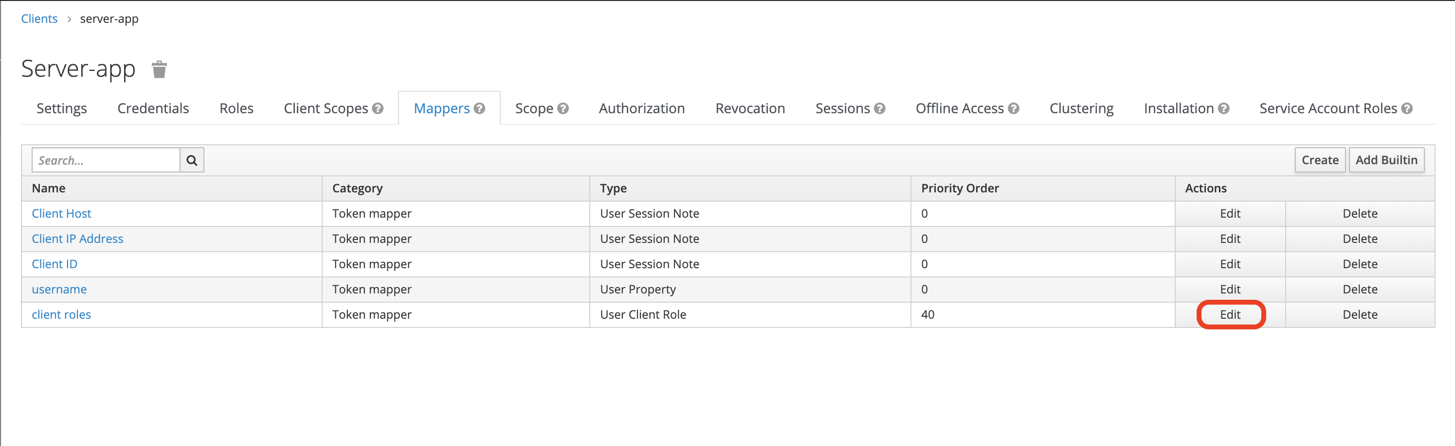 Отредактируйте маппер client roles и нажмите Edit (Редактировать):