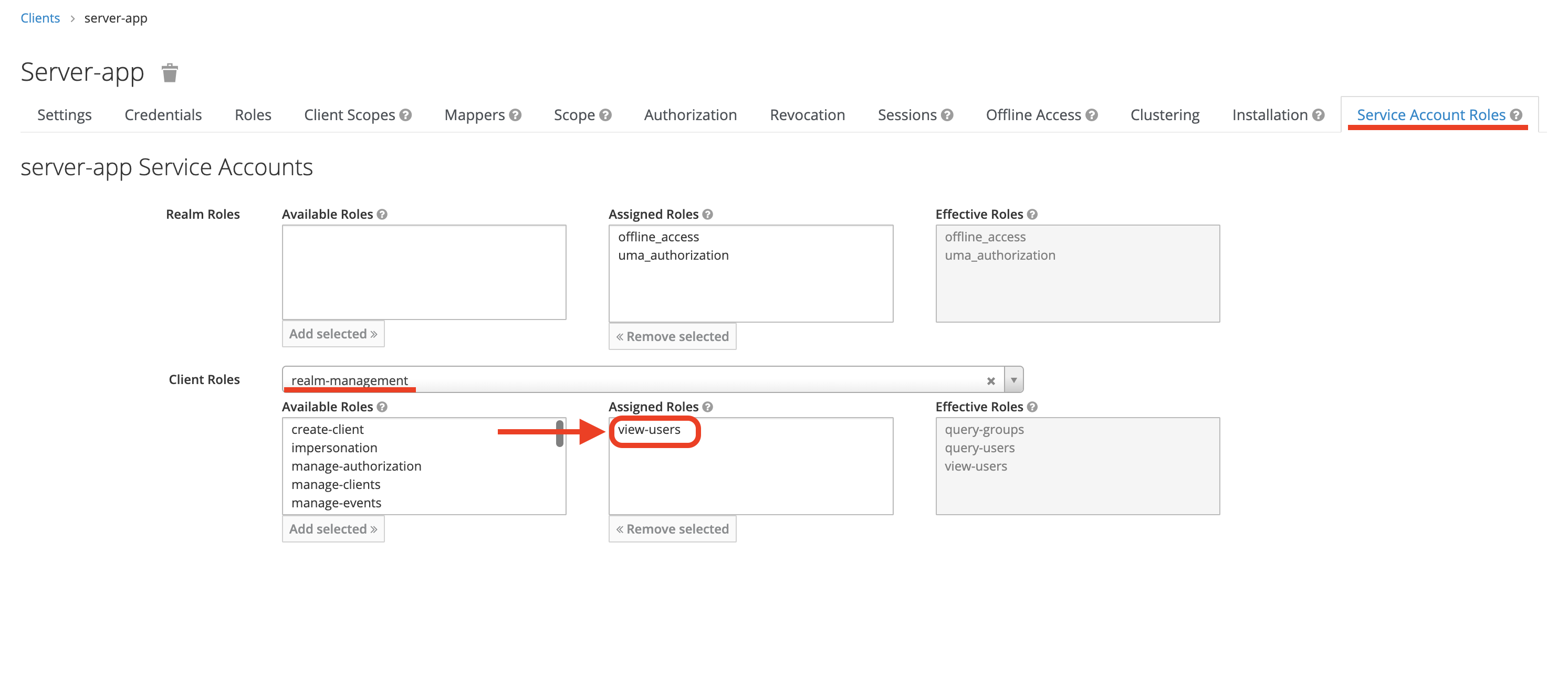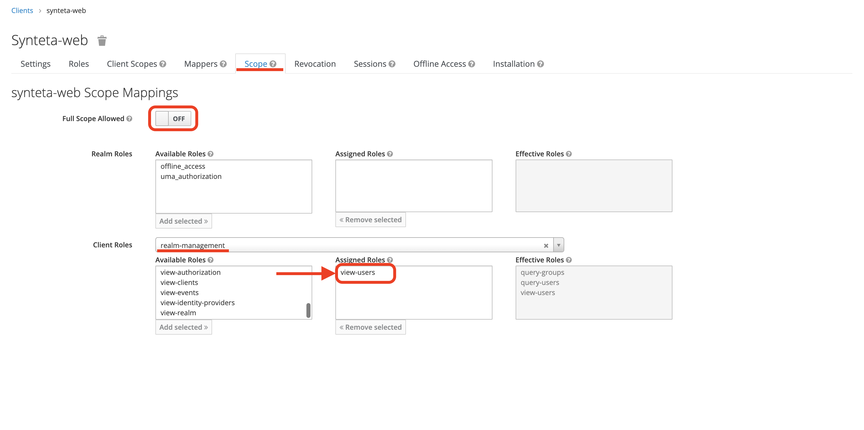realm-managementиз выпадающего списка Client Roles.Перенесите роли