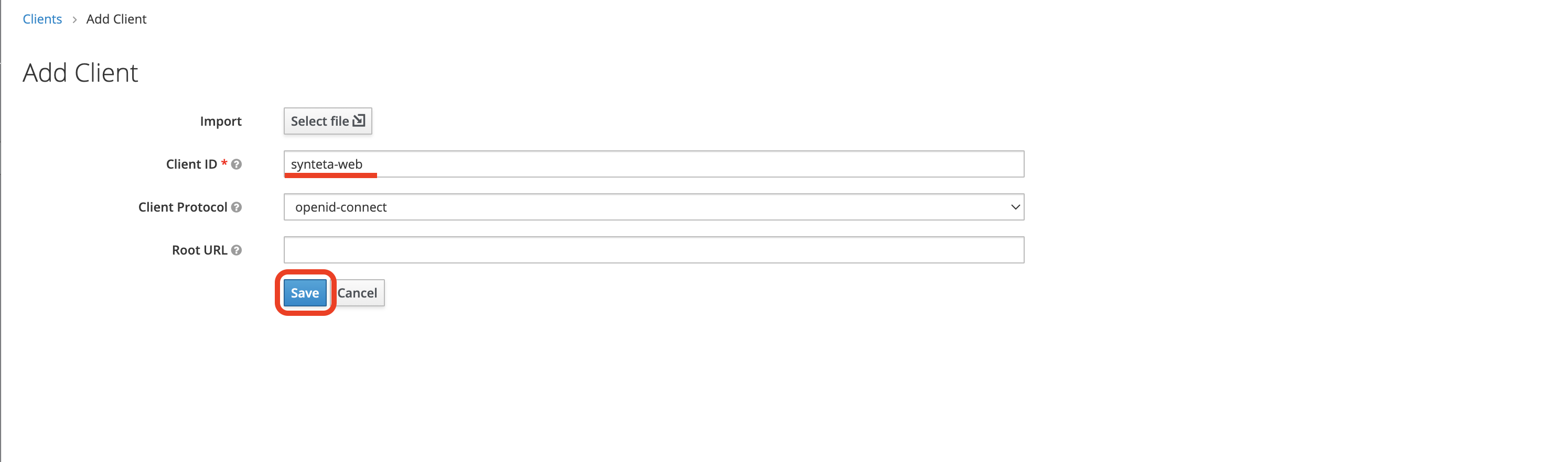 Укажите идентификатор клиента (например: synteta-web) в поле Client ID и нажмите кнопку Save (Сохранить):